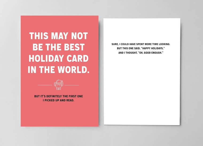 THE INSIDE READS... SURE, I COULD HAVE SPENT MORE TIME LOOKING. BUT THIS ONE SAID, "HAPPY HOLIDAYS," AND I THOUGHT, "EH, GOOD ENOUGH."